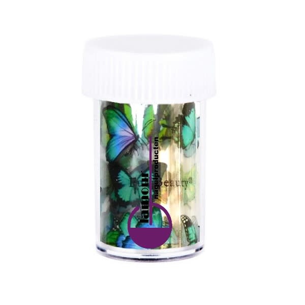 With transfer foil you can easily apply fun patterns to your nails. Apply the transfer foil glue to the last color layer and press the foil to the nail.