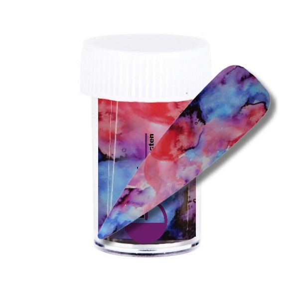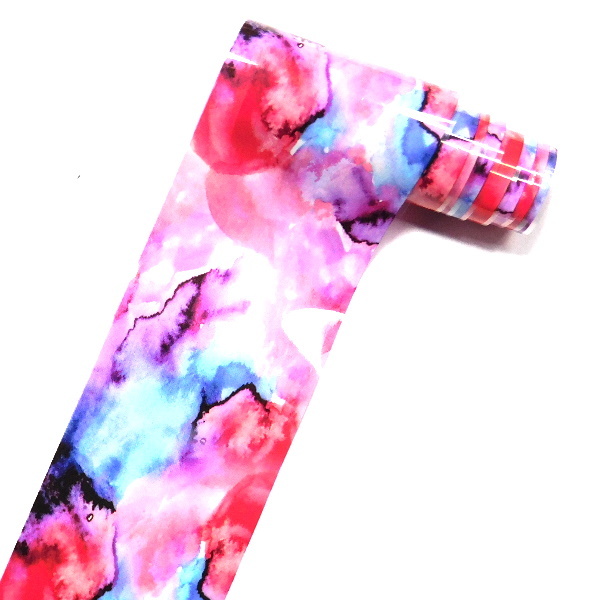 With transfer foil you can easily apply fun patterns to your nails. Apply the transfer foil glue to the last color layer and press the foil to the nail.