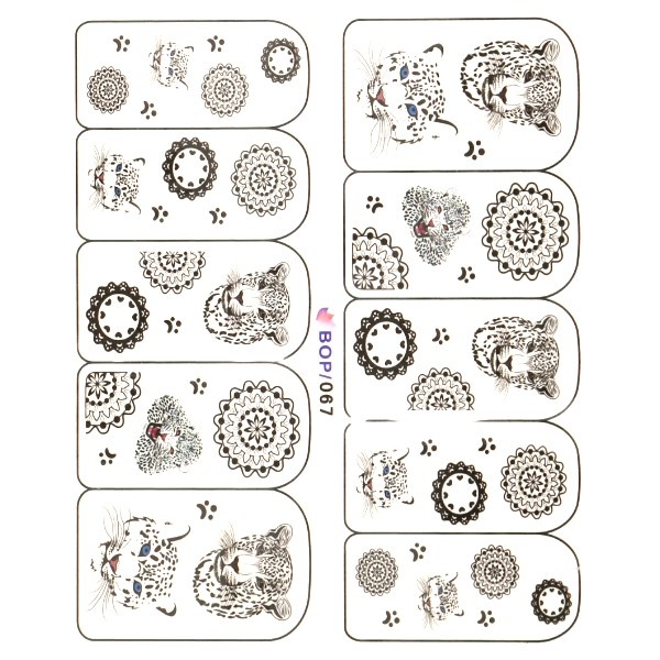 Waterdecal nailart stickers that only need a little water to apply. Make the back of the sticker wet and push the print directly on to the nails.