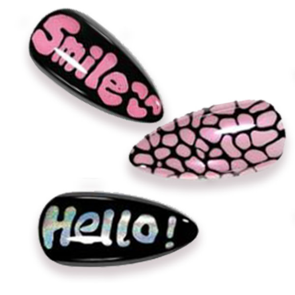 Le Poke Gel s'utilise avec la base Poke Gel et le Poke Gel Noir ou Blanc. Les gels colorés s'étalent sur la base dans différentes directions, vous permettant de créer des motifs originaux et même d'écrire du texte !