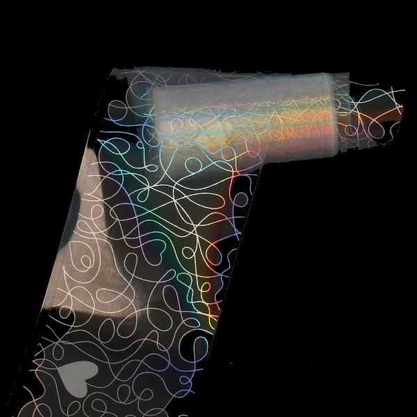 Avec le film de transfert, vous pouvez facilement appliquer des motifs amusants à vos ongles. Appliquez la colle pour transfert sur la dernière couche de couleur et appuyez sur le film pour appliquer le clou.
