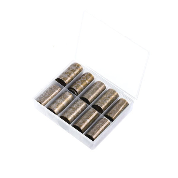 Met transferfolie kan je makkelijk leuke patronen en motieven plaatsen op de nagels. Breng de lijm aan op de laatste kleurlaag en druk de folie op de nagel.