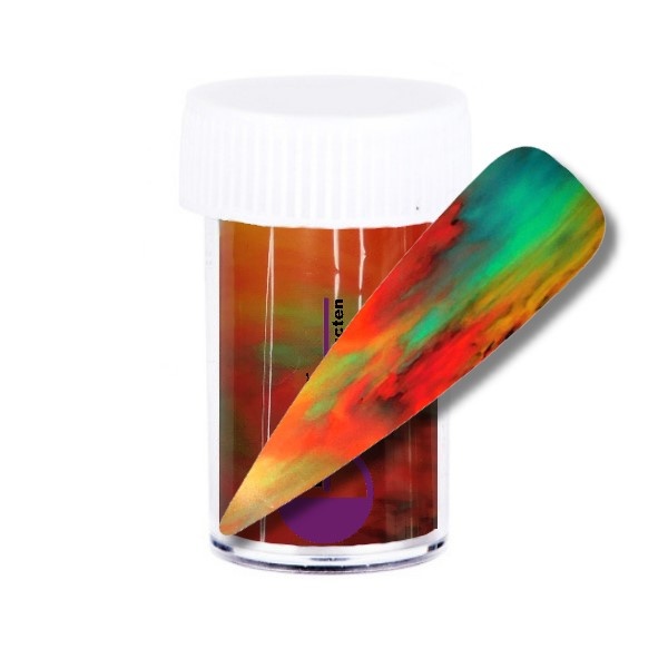 Met transferfolie kan je makkelijk leuke patronen en motieven plaatsen op de nagels. Breng de lijm aan op de laatste kleurlaag en druk de folie op de nagel.