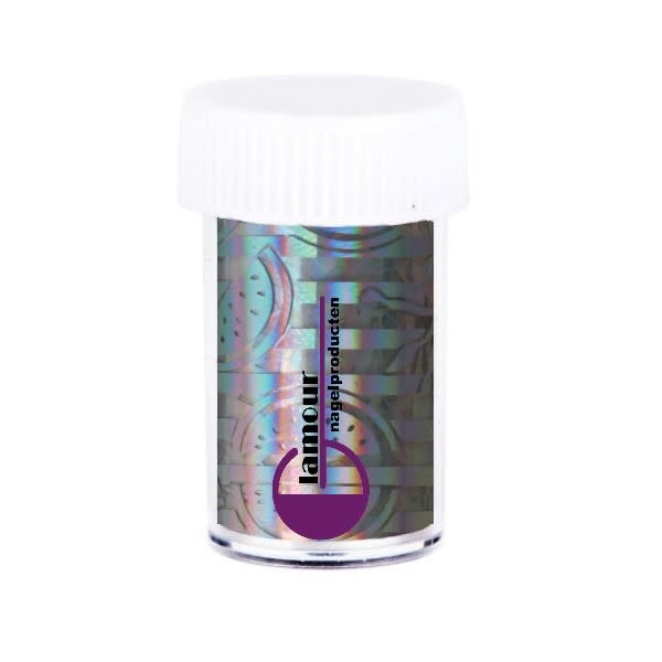 Met holografische transferfolie kan je makkelijk leuke patronen en motieven plaatsen op de nagels. Breng de lijm aan op de laatste kleurlaag en druk de folie op de nagel.
