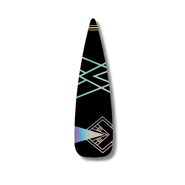 Met holografische transferfolie kan je makkelijk leuke patronen en motieven plaatsen op de nagels. Breng de lijm aan op de laatste kleurlaag en druk de folie op de nagel.